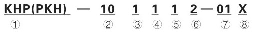 系列代號:KHP(PKH)系列板式球閥 ②公稱通徑:6、10、16、20、25、32、40、50mm ③閥體 材料:1-鋼 ④球體材料:1-鋼、2-黃銅 ⑤工作溫度:1、-25~+100℃ 2、-30~+170℃ ⑥其他密封:2-丁晴橡膠、4-氟橡膠 ⑦ 手柄形式:01-鋁質(zhì)直柄02-鋁質(zhì)曲柄03-鑄鋅直柄04-鑄鋅曲柄05-鋼質(zhì)直柄06-鋼質(zhì)曲柄09-不帶手柄 ⑧設(shè)計序號:由生產(chǎn)商定